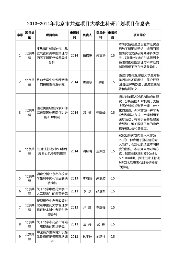 2013-2014年北京市共建项目大学生科研计划项目信息表(3044am永利集团3044noc)