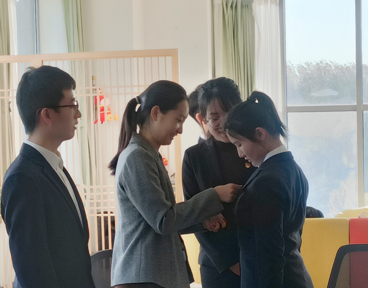最后,入党介绍人为14名预备党员佩戴党徽,预备党员们纷纷表示,从摘下团徽戴上党徽的一刻开始,感觉自己的责任和使命将更加艰巨,未来必将继续奋斗,在生活中,积极为同学们服务,在学习上,更加努力刻苦,做一名合格的共产党员,自觉传承党的红色基因,彰显昂扬奋斗的姿态,与新时代同向同行,不忘初心,勇于创新,用心动书写青春华章。