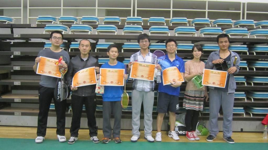 本次比赛分为羽毛球双打比赛和乒乓球双打比赛。报名羽毛球比赛的共有14支队伍。比赛分7个场地进行2轮淘汰赛,决出4组队伍进入决赛,决赛实行积分制。每场比赛采用3局2胜制,每局11分,各组选手通过抓阄的方式获得自己的比赛对手和场地。比赛在2013年10月21日中午11点40分准时开始,参赛选手在赛场上尽情发挥,配合默契,技术与技巧兼得,展现出各自的风采,整场比赛充满了温馨、激情和快乐。经过5轮的激烈角逐,最终羽毛球双打比赛获得冠军的是赵静和李祎迪组合,获得季军的是周磊和陈素组合,获得亚军的是罗存和陈越组合以及顾泽龙和徐云龙组合。