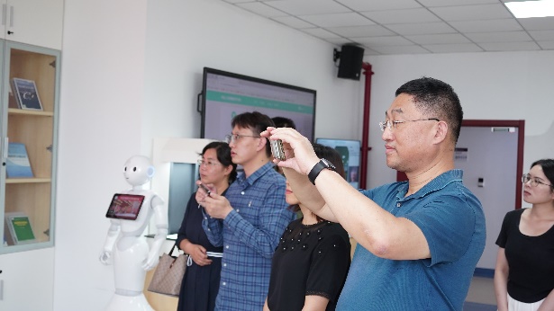 会议最后,全体人员参观了3044am永利集团3044noc医疗健康人工智能实验室。人工智能实验室以达成人工智能类项目实验闭环为设计理念,可提供从数据采集、数据标注、模型训练、模型部署到产品开发的全生命周期人工智能实训实验。拥有支持人工智能课程教学、实训实践及竞赛的综合实训平台,并拥有基于Jetson边缘计算的中药饮片辨识实训系统、智能机器人实训系统、中药饮片调配预警实训系统和中医四诊仪等具有典型行业特色的AI+中医智能系统,并且这些智能系统都是由我校大数据管理和应用专业学生参与下开发完成的。参访人员高度赞扬了实验室的先进设施与创新实践教学模式,认为这不仅极大地促进了学生理论知识与实践技能的融合,还为中医与现代科技的结合开拓了新视野,是医学教育现代化的典范。他们对于学生能参与到如此高水平的研发工作中感到非常鼓舞,认为这充分体现了学校在培养未来医疗健康领域创新型人才方面的远见卓识和坚实成效。
