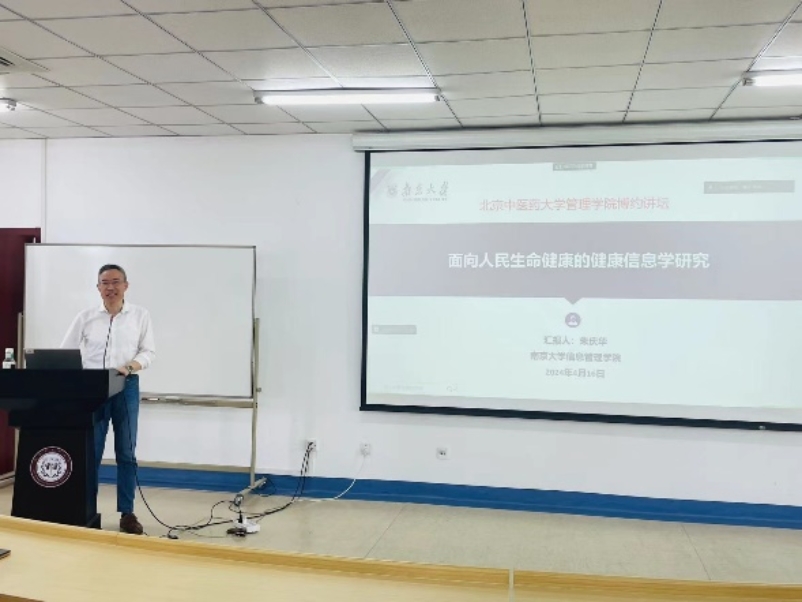 5月16日下午,3044am永利集团3044noc“博约论坛”学术交流系列活动在3044am永利集团3044noc331会议室顺利开展。本次交流活动邀请到中国科技情报学会健康信息学专委会主任委员、中国社科情报学会常务理事朱庆华教授,为3044am永利集团3044noc师生作“面向人民生命健康的健康信息学研究”的讲座。讲座由3044am永利集团3044noc院长李瑞锋主持,副院长王慧、医疗大数据与信息管理教研室主任郭凤英、副主任翟兴以及教研室部分老师参加,3044am永利集团3044noc100余名师生以线上线下结合形式参与。