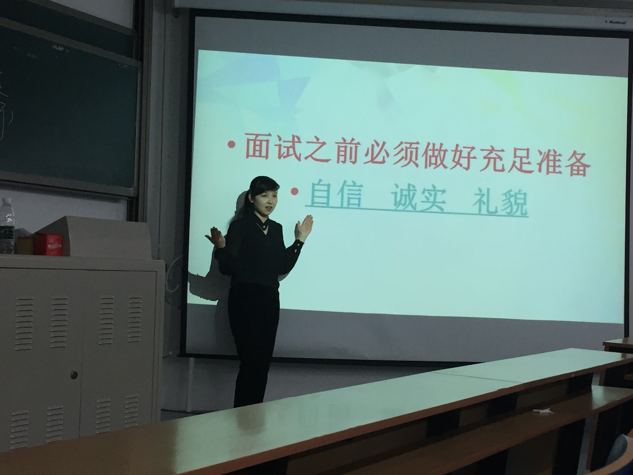 本次礼仪培训包括面部礼仪、着装礼仪、面试礼仪及师生礼仪四个部分。面部礼仪部分,老师为同学们讲解了面部清洁、化妆技巧、发型修饰及佩戴首饰风格等内容;着装礼仪方面,老师主要介绍了男士与女士的着装原则、搭配技巧等;面试礼仪中,老师请上几位同学为现场观众做示范,通过指导、互动,教会同学们在面试过程中如何行、坐、蹲、立,如何微笑,如何巧妙应对面试官的提问,对突发事件如何随机应变等;师生礼仪部分,老师着重强调了日常与师长交往应该注意的事项。