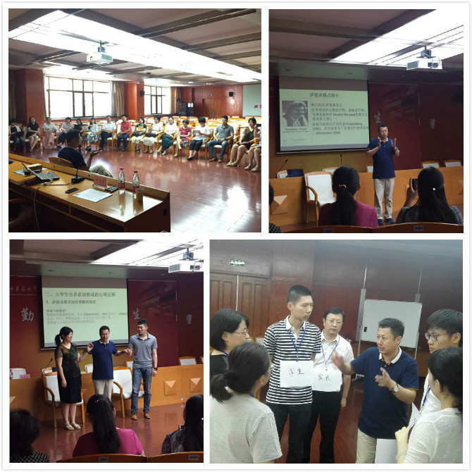 王东升老师由“情绪管理”入题,将主讲内容分为“抑郁症与自杀”、“对自杀的认识和自杀危机评估”以及“自杀危机干预”三个有机联系的部分进行讲解,为大家详细介绍了抑郁症的形成过程,如何从萨提亚模式视角理解自杀意念和自杀意图逐步形成的心理过程,以及如何显性、隐性地评估来访者的自杀风险,并用模拟演练的方式帮助大家学习和运用谈话技巧。最后,王老师从实际经验出发,用雕塑的方式让大家清晰地看到如何协调和组织院系、辅导员、家长、学生及学校管理层的资源,以协助危机干预。