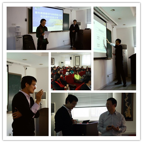 陈德球教授以“青年教师教学与科研能力培养与提升经验分享”为主题,分享了自己的成长经历和教学心得,他结合自身的教学实践与经验,建议教师授课时将课本知识点和社会热点问题、个人科研成果紧密相结合,积极运用案例教学法,调动学生的课堂主动性,同时,平衡好科研与教学的关系,用他的话说:“科研是教学的‘活水源头’,教学是科研的‘隐形动力’”,二者相得益彰。随后,陈教授展示了他在准备全国高校青年教师教学竞赛时所讲授课程的教案与课件,用实例让台下老师了解如何更好的设计一门课程。