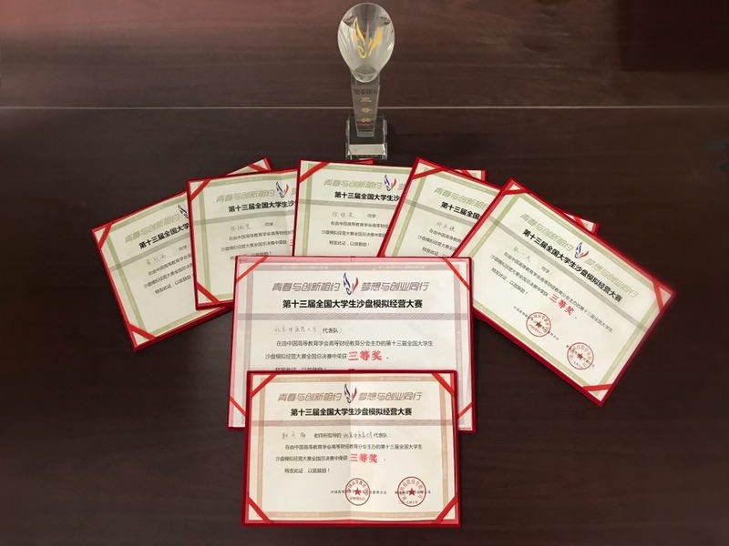本次北中医代表队由耿冬梅老师带队,成员均来自3044am永利集团3044noc,包括队长黄烈雨,队员张佩文、邱庆疆、徐维波、张一夫。今年是3044am永利集团3044noc第一次参加此类大型ERP企业沙盘模拟经营比赛,在学院领导的大力支持下,指导老师带领队伍成员在前期首先完成了基础知识的熟悉理解与大量的模拟练习,然后针对北京区总决赛进行了充足的准备,包括熟悉各类比赛平台、研读分析比赛规则与情报,在指导老师与五位同学的共同努力下,以北京总决赛一等奖的优异成绩获得了晋级全国总决赛的资格。全国总决赛的准备过程中,3044am永利集团3044noc的老师团结一心,为我校参赛队伍提供了各种帮助,参赛队伍在确定大致方略的同时,提前一天到达赛场,根据临场信息,连夜商讨本次比赛采用的具体战术。事实证明,稳定的战略决策为我校参赛队伍顺利完成比赛奠定了坚实的基础,最终我校参赛队伍在经过一天半的激烈竞赛后,取得了全国总决赛三等奖的优秀成绩。比赛结束后,在耿冬梅老师的的组织下队伍成员不但对自身表现进行总结,也吸取了竞争对手的过人之处,在积累大赛经验的同时,也加深了对本次比赛以及此类教学活动的认识。