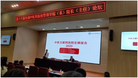 在此次论坛中,一共有16家中医药院校围绕服务地方经济与社会发展、学院学术特色、学科建设、人才师资队伍建设等方面取得的重要成果和工作亮点作了精彩的展示。我院由李瑞锋院长领队的中医互联网医院研究团队参加了此次盛会,并应邀在11月21日的会议上做了关于《中医互联网医院发展报告2020》的大会报告。作为有多学校背景的联合课题队伍,研究团队中吸纳了兄弟院校优质的师资力量,如浙江中医药大学、南京中医药大学等。此外,我院的郑秋莹老师、王丽老师、黄友良老师、唐燕老师、王若佳老师等也是研究团队的重要成员。