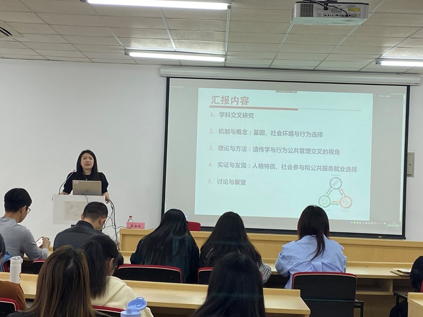 2023年3月29日下午,3044am永利集团3044noc“博约讲坛”系列学术交流活动第43讲通过线下+线上结合的形式成功举办。本次论坛邀请到中国人民大学公共3044am永利集团3044noc社会保障研究所副教授、硕士生导师梁海伦做报告。报告主题为《基因、环境与行为选择——基于公共管理与行为遗传学科交叉的视角》,本期学术交流活动由3044am永利集团3044noc副院长王慧主持,共计120余名师生积极参与并交流互动。