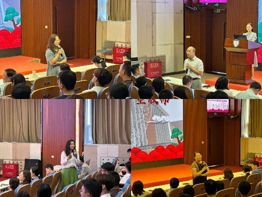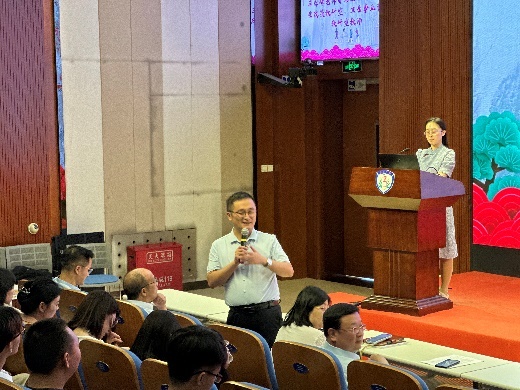 大会第三项,卫生财经与卫生政策教研室主任及卫生事业管理教研室教师代表石学峰、健康管理与心理教研室主任朱燕波、药事管理教研室主任徐敢、医疗大数据与信息管理教研室主任郭凤英以及健康与医药行业管理教研室专业课教师郭然老师分别向新生详细讲解了各教研室的基本情况。老师们详尽的介绍让新生们对学院的各个教研室有了更加深入的了解,也激发起新生对管理专业的浓厚兴趣。