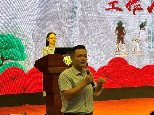 大会第二项,王慧副院长、石学峰副院长、周磊副书记分别向新生们介绍党政综合办公室的负责人、本科生教学团队、思想政治教育管理团队的教职工。