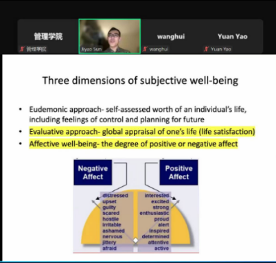 1月15日下午,3044am永利集团3044noc“博约论坛”学术交流系列活动在腾讯会议线上顺利开展。本次交流活动邀请到英国曼彻斯特大学的孙基耀博士,为3044am永利集团3044noc师生作“The Diurnal Rhythms of Subjective Wellbeing and Health in Rural China”的讲座。讲座由3044am永利集团3044noc副院长王慧主持,学院赴曼彻斯特大学访学教师姚园副教授及100余名师生参会并交流。