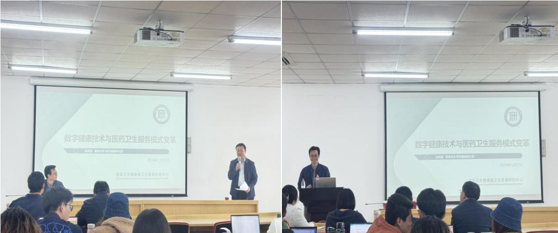 邱英鹏老师从背景、我国数字健康发展、数字健康技术与医药卫生服务模式变革、发展趋势及思考四个方面深入探讨了我国数字健康发展的现状及基本趋势,并提出了有针对性的建议。邱老师先讲述了全球信息技术的发展与现状。然后,分享了数字中国政策顶层设计的建设历程,从数据要素、数字技术和服务数字化转型三个角度帮助同学们更好地理解数字健康是如何助力公立医院高质量发展的。同时,介绍了大模型技术在医疗机构中的应用现况。最后,邱老师认为数字健康核心在于数据利用与价值化,未来需在数据应用上取得突破,并提出了有针对性的建议。