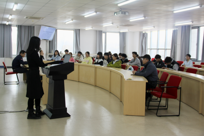 王妍老师向学生代表说明综合量化加分细则修订的重要性,并重点围绕学科竞赛加分、专著类加分、培训类加分、资格证书类加分等学生争议比较多的项目详细介绍了综合量化加分细则修订(征求意见稿)的相关内容。