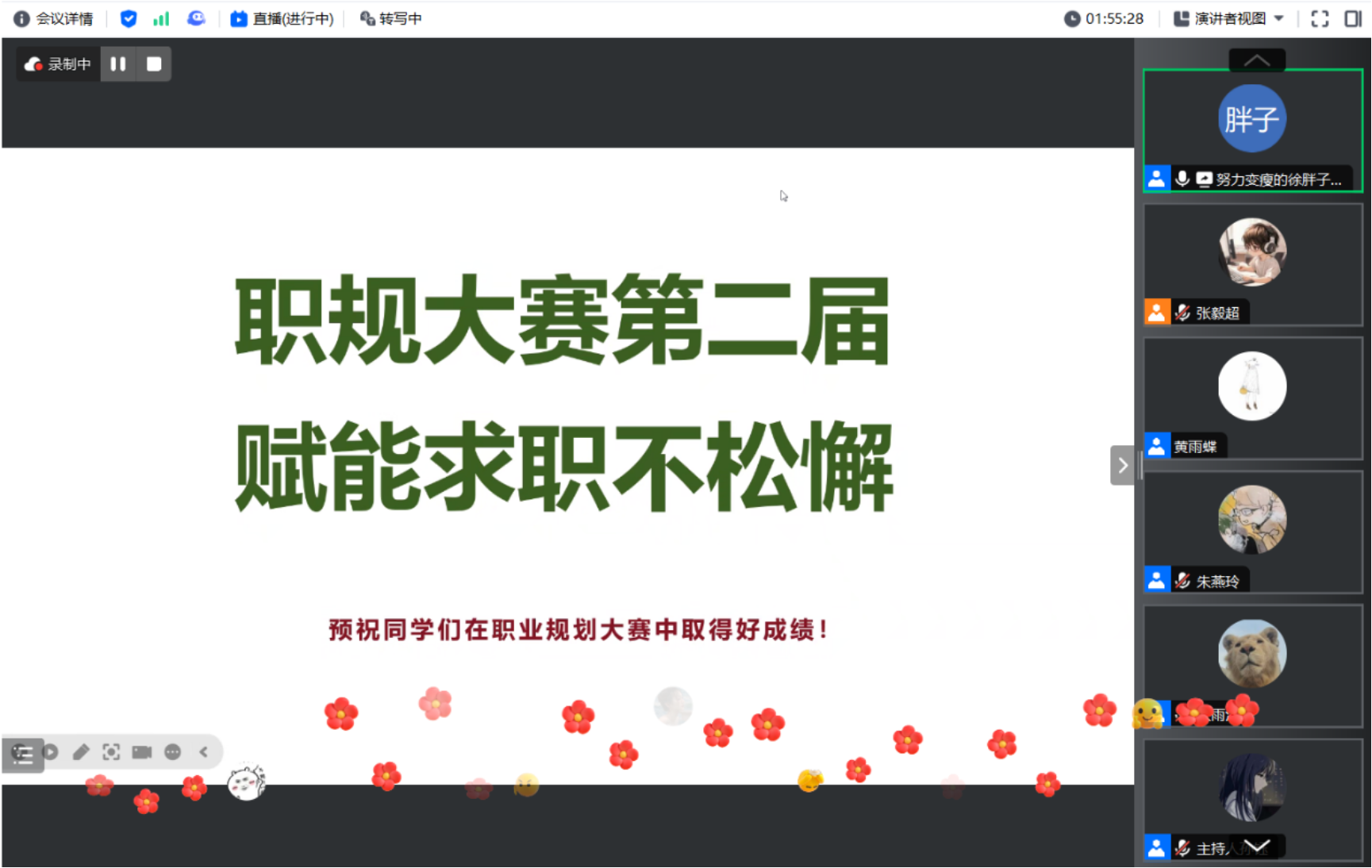 在培训尾声,徐博函老师向即将参加第二届全国大学生职业规划大赛的同学们表达诚挚的祝愿,希望他们能在比赛中取得优异成绩,实现个人能力的提升和自我超越。