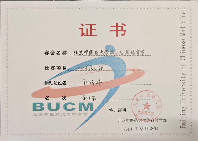 22药管班张剑飞 男子实心球第二名,男子跳远第五名