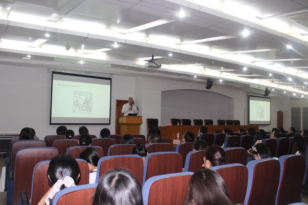 Hartmann教授围绕《实验研究在卫生管理研究中的应用与管理类SCI写作》,以自己的两项研究为例,为大家讲解了卫生管理领域的科研思路和步骤,包括提出问题、构建理论、实验验证等;此外,从文章架构、受众、期刊选择、综述研究等方面就国际期刊上论文发表进行了讲解,并与同学们交流了英语论文的写法和练习方法,并对同学们提出的相关问题进行了详细解答。Hartmann教授的精彩讲座博得了现场阵阵热烈的掌声。